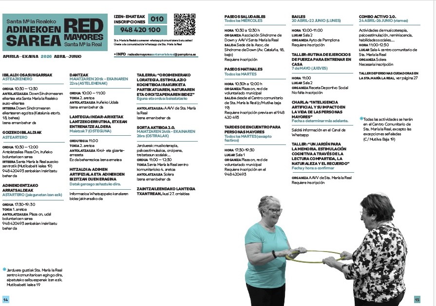 ¡Hola! Compartimos las actividades organizadas por la red de mayores de Santa Mª la Real para los meses de abril- junio.