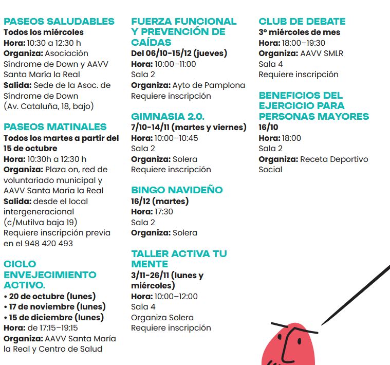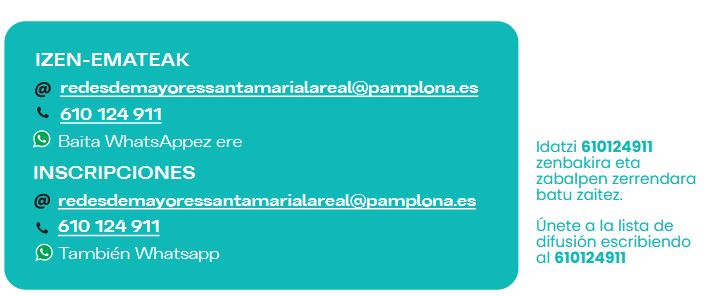 Inscripciones en el teléfono 610 124 911 (teléfono o whatsapp) o en el correo redesdemayoressantamarialareal@pamplona.es