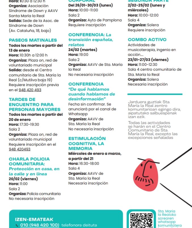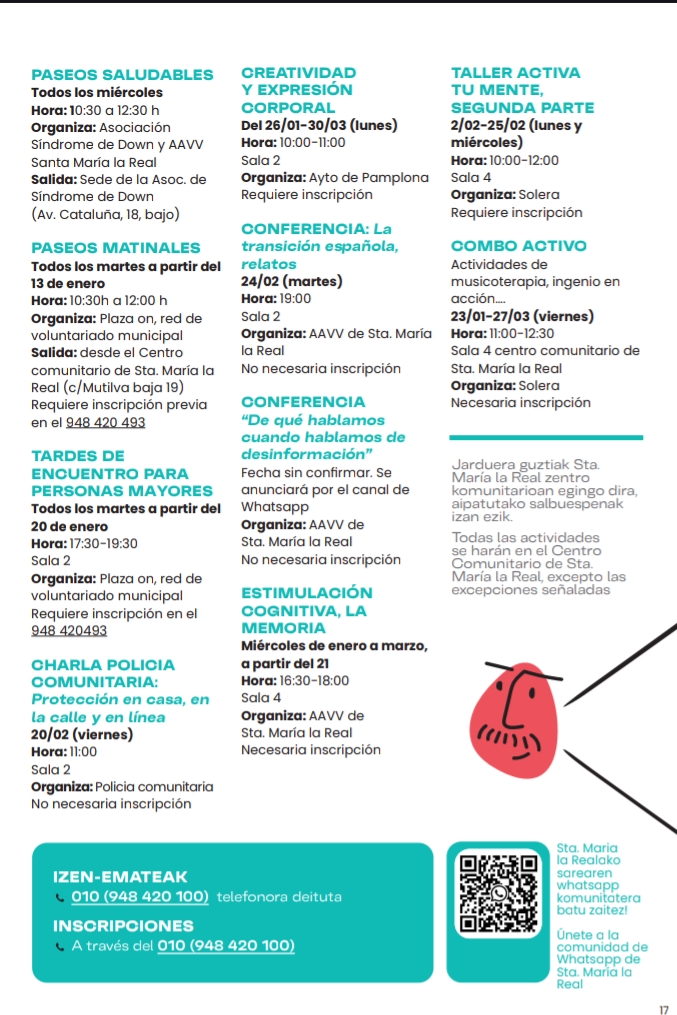 Hola! Compartimos información sobre las actividades programadas por la Red de Mayores. Inscripciones a través del teléfono 948 420 100 (010). Podéis ver todas las actividades aquí: