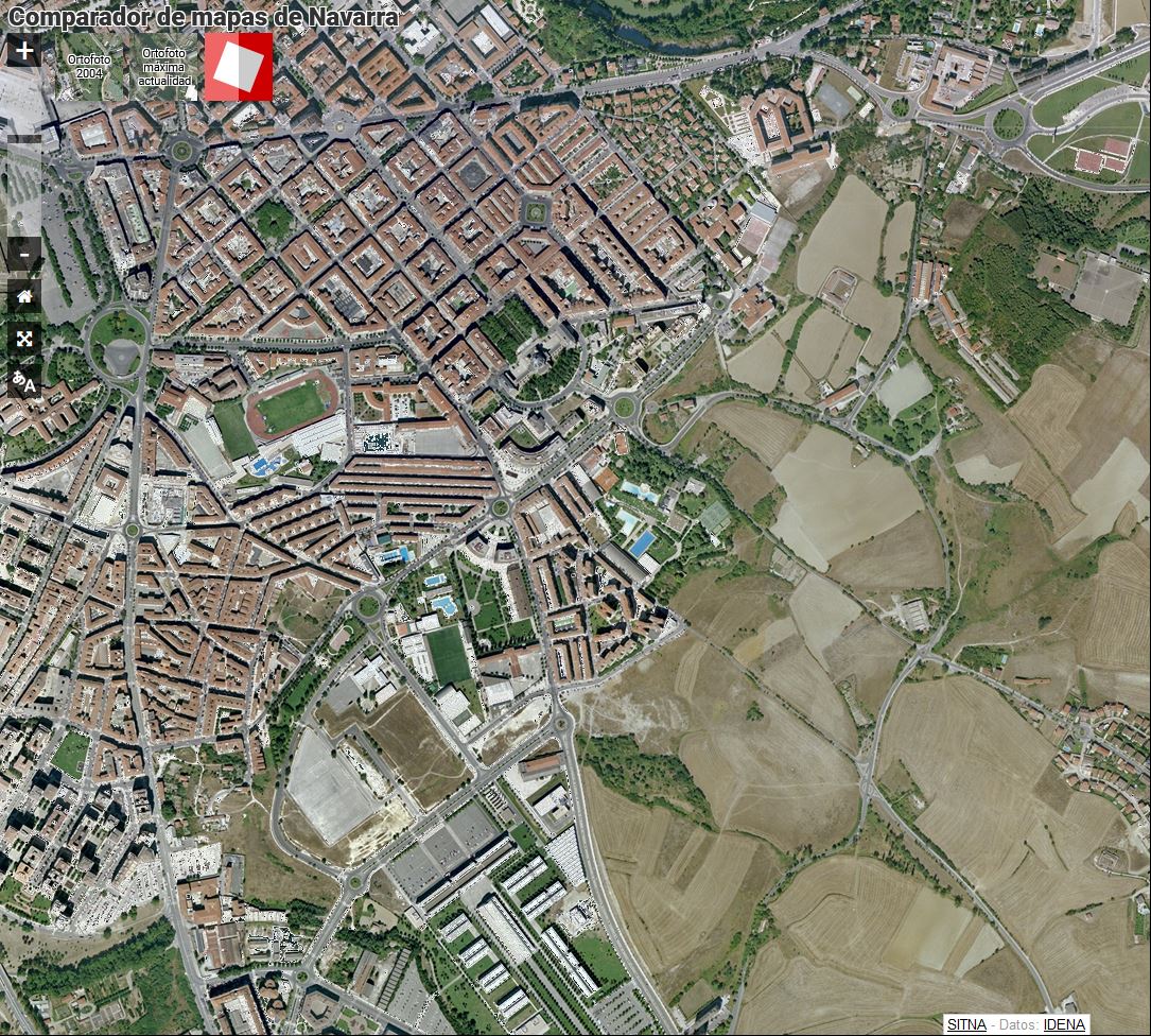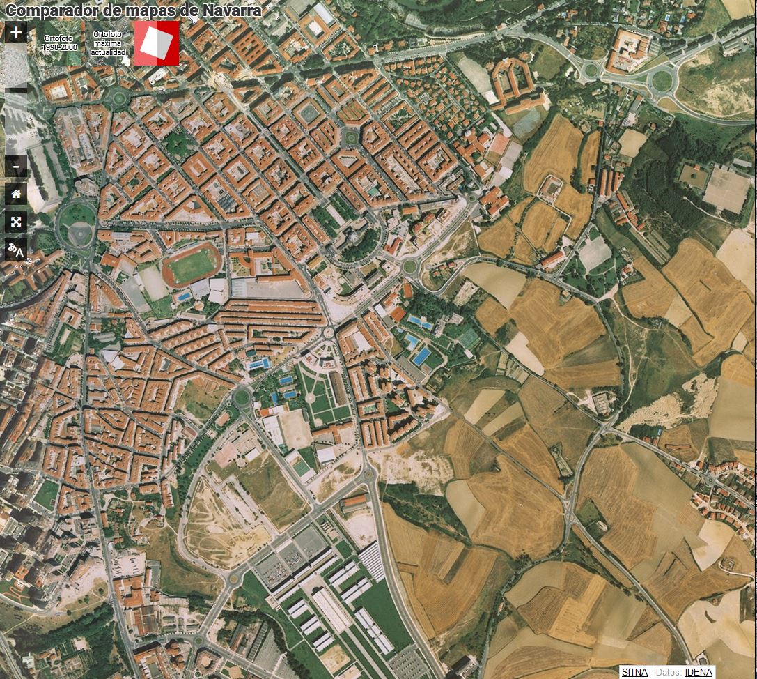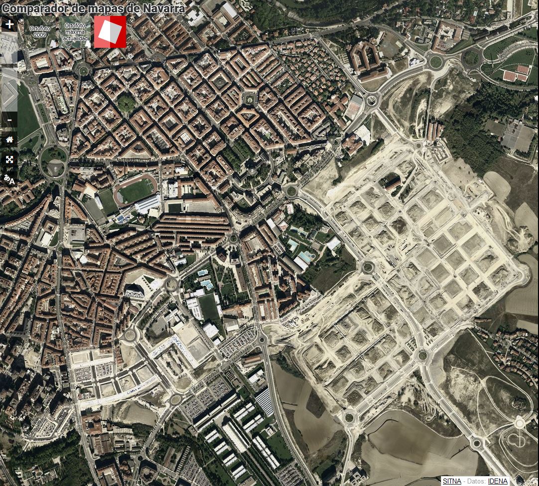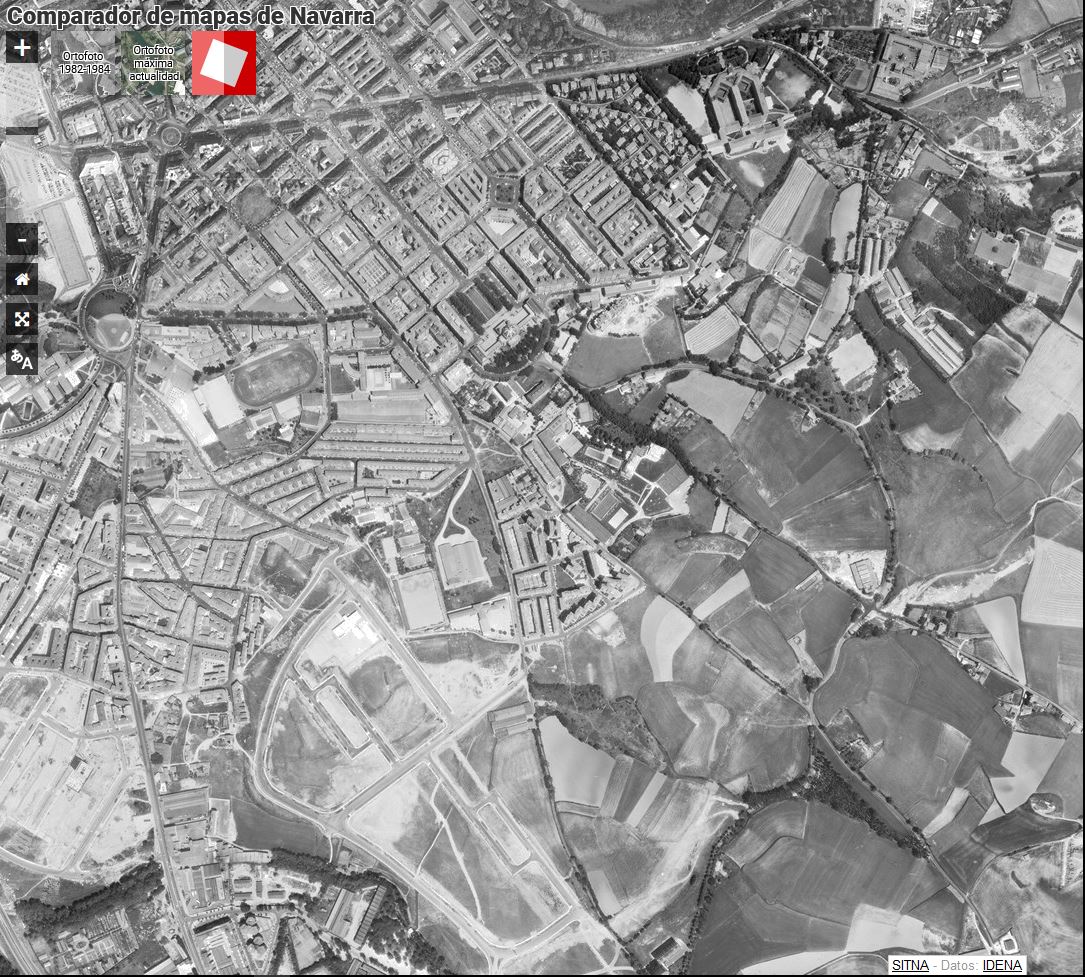 El Gobierno de Navarra ha lanzado una aplicación con la que se puede comparar mapas con acceso al archivo de fotografías aéreas desde el primer vuelo completo a Navarra realizado en 1927). Hemos querido ver la evolución en nuestro barrio, donde antes sólo era campo, en 2009 se empezó a crear la cuadrícula de lo que sería nuestro barrio y pasamos por los diferentes años para ver poco a poco la evolución.