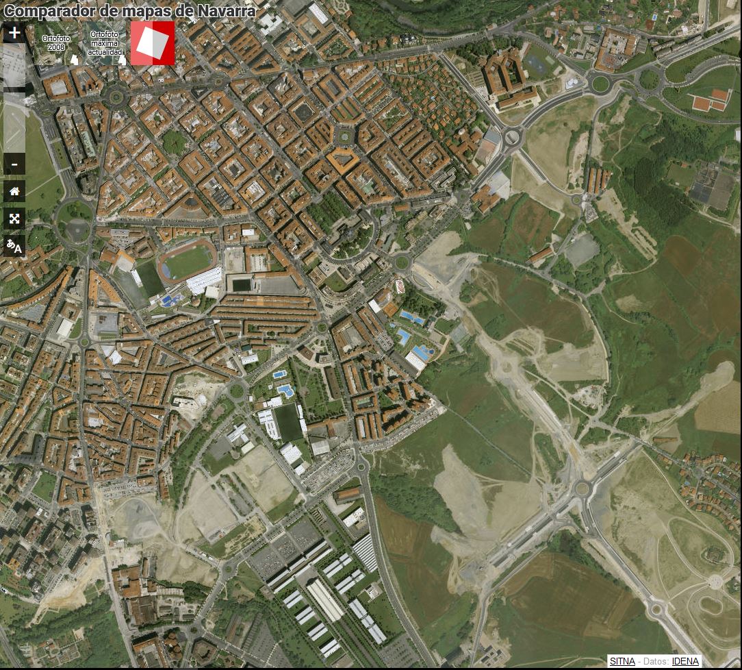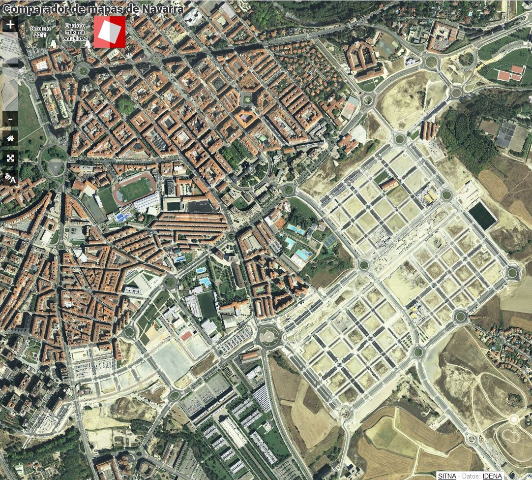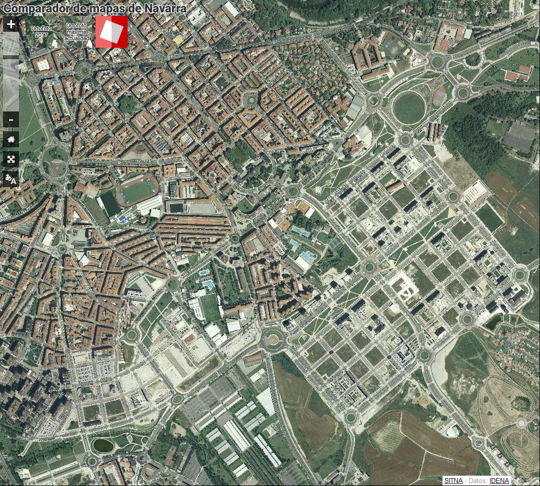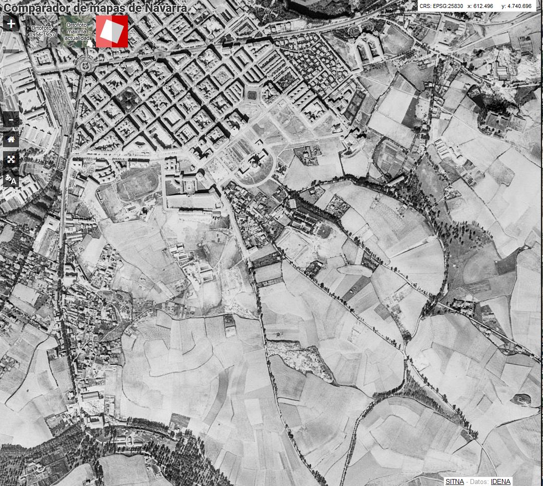 El Gobierno de Navarra ha lanzado una aplicación con la que se puede comparar mapas con acceso al archivo de fotografías aéreas desde el primer vuelo completo a Navarra realizado en 1927). Hemos querido ver la evolución en nuestro barrio, donde antes sólo era campo, en 2009 se empezó a crear la cuadrícula de lo que sería nuestro barrio y pasamos por los diferentes años para ver poco a poco la evolución.