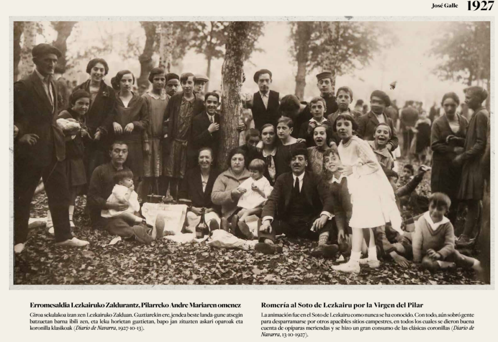 La animación fue en el Soto de Lezkairu como nunca se ha conocido. Con todo, aún sobró gente para desparramarse por otros apacibles sitios campestres, en todos los cuales se dieron buena cuenta de opíparas meriendas y se hizo un gran consumo de las clásicas coronillas (Diario de Navarra, 13-10-1927).