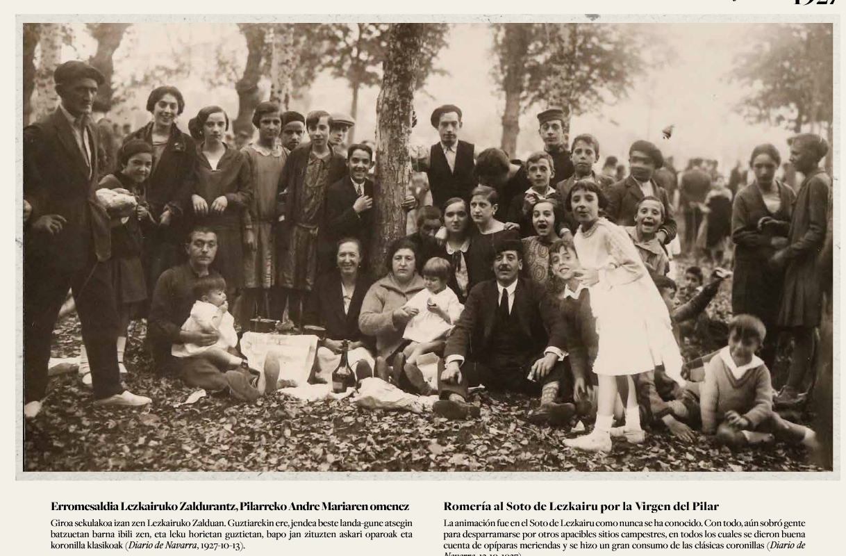 La animación fue en el Soto de Lezkairu como nunca se ha conocido. Con todo, aún sobró gente para desparramarse por otros apacibles sitios campestres, en todos los cuales se dieron buena cuenta de opíparas meriendas y se hizo un gran consumo de las clásicas coronillas (Diario de Navarra, 13-10-1927).